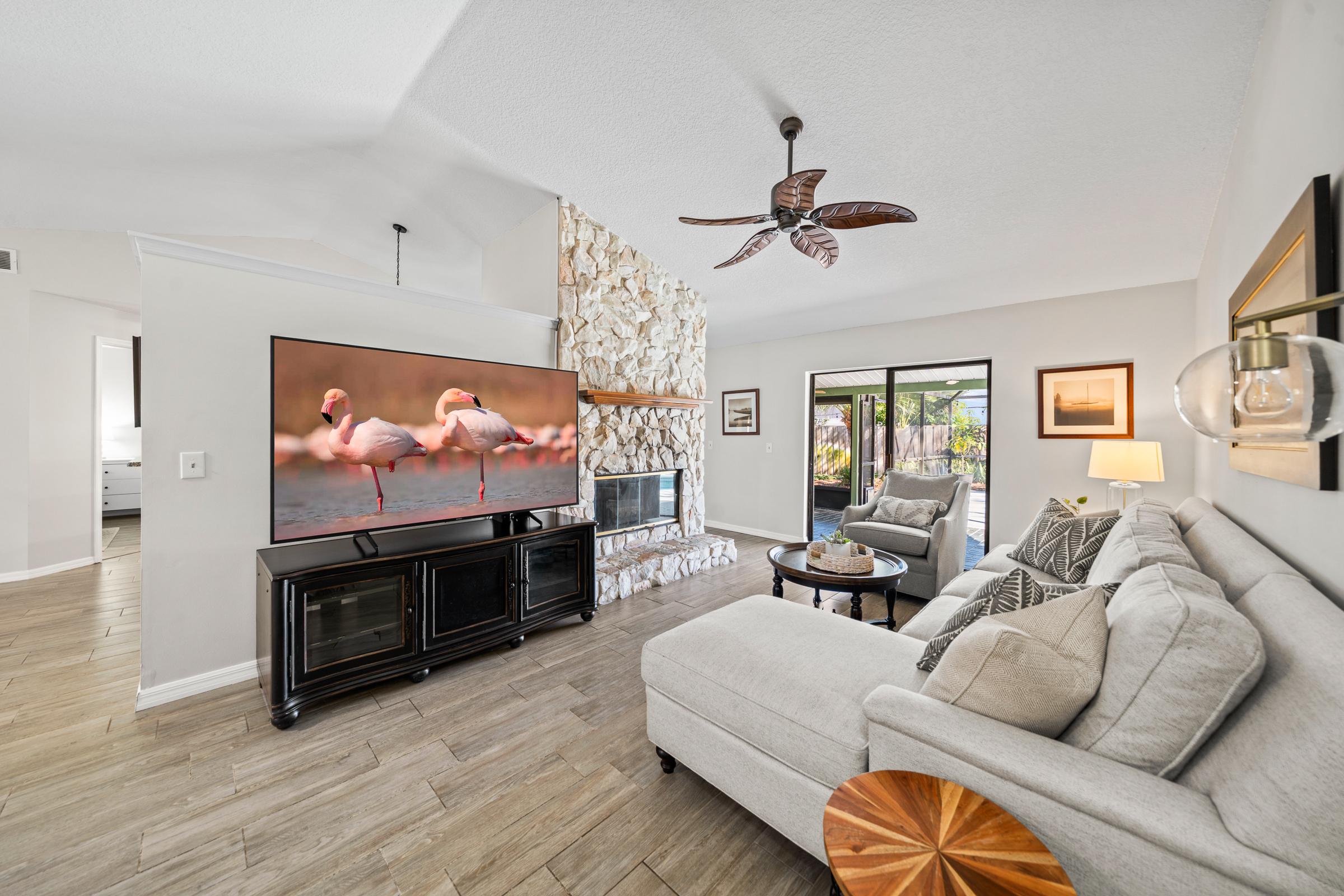 One of the most loved features of this home is how seamlessly it connects indoor and outdoor living. Sliding glass doors open directly to the patio and private pool, creating an effortless flow that makes everyday living feel like a retreat.